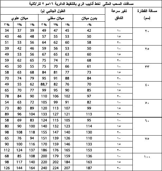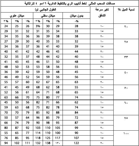 | 0,80 - 0,95 | في الري بالتنقيط | 80 | نباتات مزارع الحبوب |