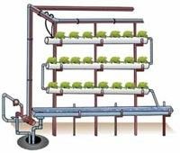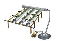 نظام الأنابيب pipe system : المحلول المغذي يتدفق على عمق 2ـ3 سم خلال أنبوب ( ماسورة ) pvc قطرها 10 سم ليمر على أصص أو أكواب شبكية بها نباتات مثبتة في فتحات في الأنبوب ، الأصص أو الأكواب البلاستيكية تحتوي على وسط نمو + نبات صغير ، وقاع الأصص يلامس المحلول المغذي الذي يجري في الأنبوب ، النباتات توضع في أصص شبكية مملؤة بوسط نمو مثل قشور الأرز أو نشارة الخشب أو البيرليت أو البيت موس أو أي مادة مناسبة ، يمكن وضع قطعة صغيرة من الشبك لتبطين الأصص لمنع وسط النمو من السقوط في المحلول المغذي.